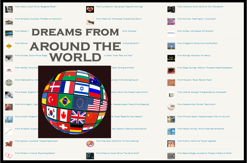 Dreams From Around the World FOR MEMBERS 39 DREAMS SUBMITTED & INTERPRETED From Kathu, South Africa “Daughter Bitten” by Lynmarie | Apr 3, 2015From Kathu, South Africa "Daughter Bitten" THE... read more From Brisbane, Australia “The Best of...