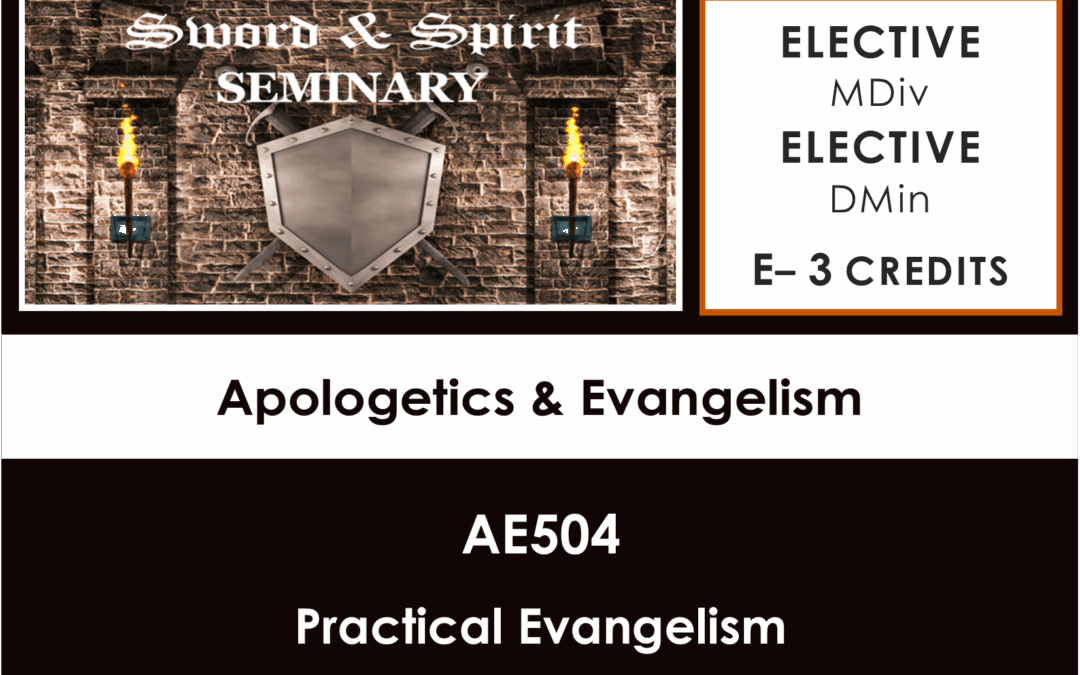 AE504‒ Practical Evangelism: Description COURSE DESCRIPTION: Equipped with the facts of apologetics, how do we effectively share the gospel? Do we simply flaunt our logic and brilliance which defies reasoning? Need we develop loving relationships through years of...